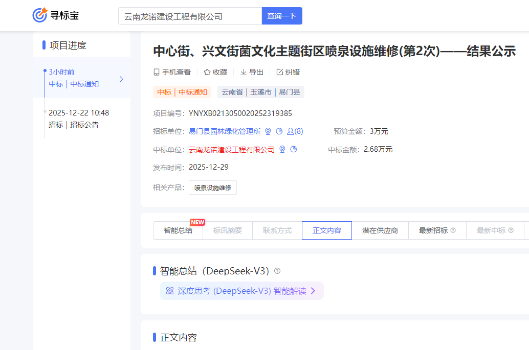 喜訊《云南龍諾建設(shè)工程有限公司中標(biāo)公告》